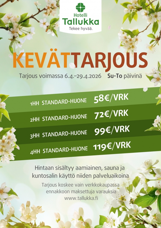 Tänä aikana uima-allas ja poreallas ovat poissa käytöstä. Pahoittelemme huoltotöistä mahdollisesti aiheutuvaa vaivaa. Pyrimme saamaan työt valmiiksi mahdollisimman pian ja tiedotamme uudesta avausajankohdasta verkkosivuillamme sekä hotellin vastaanotossa.