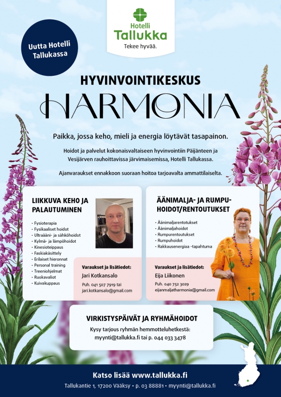 Hotellillamme toimii useita kokeneita hyvinvoinnin eri osa-aluiden ammattilaisia, joiden monipuolisista hyvinvointipalveluista pääset nauttimaan.