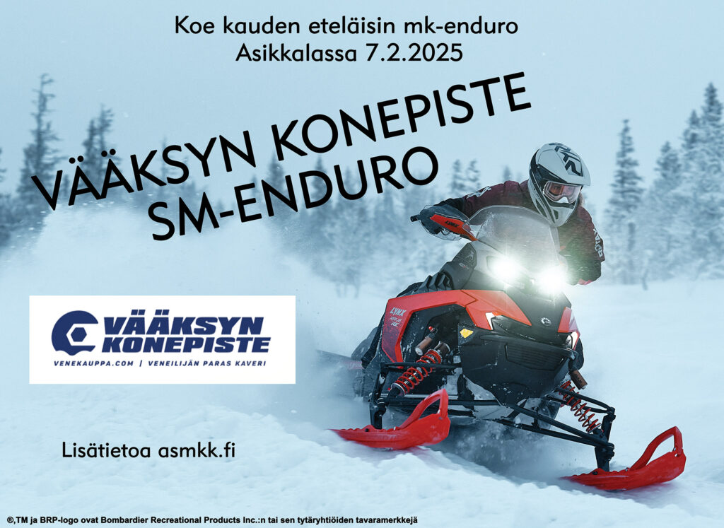 Asikkalan Moottorikelkkailijat ry:n järjestämä Vääksyn Konepiste SM-enduro järjestetään lauantaina 7. helmikuuta. Tapahtuma on kauden eteläisin moottorikelkkaenduro.